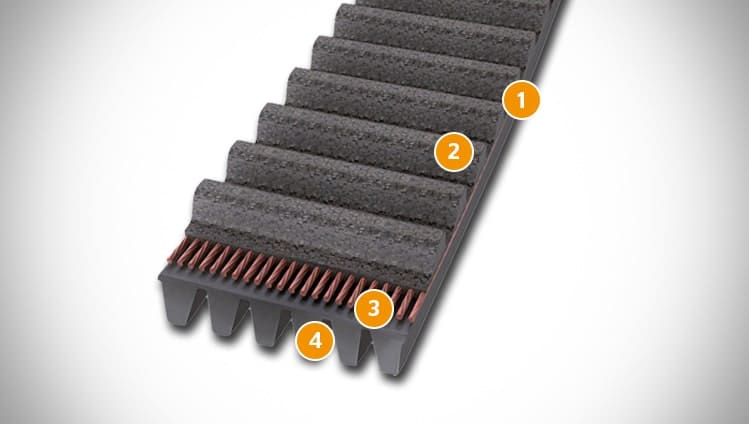 Ojačan gumijasti zobati jermen, razvit za najrazličnejše izjemno zahtevne pogone.