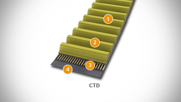 Zobati jermen za velike obremenitve in veliko izhodno moč pri visoki hitrosti (CXP) ali za trajen prenos visokega navora pri nizki hitrosti (CXA). Ob preobremenitvi je mogoč tudi zdrs jermena na narebreni strani.
